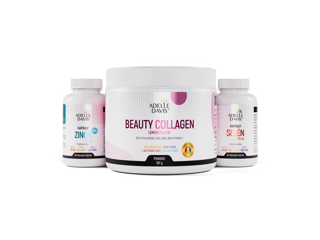 Set Krása je navrhnutý tak, aby podporoval prirodzenú krásu a vitalitu zvnútra. Obsahuje kolagén, ktorý prispieva k pružnosti pokožky, zinok, ktorý sa stará o zdravie vlasov, nechtov a pokožky, a selén, ktorý chráni bunky pred oxidačným stresom. Vzájomná kombinácia týchto látok pomáha udržať mladistvý vzhľad, sviežosť a zdravý vzhľad pokožky. Všetky podrobnosti o jednotlivých produktoch nájdete tu: Kolagén na krásu, Zinok a Selén.