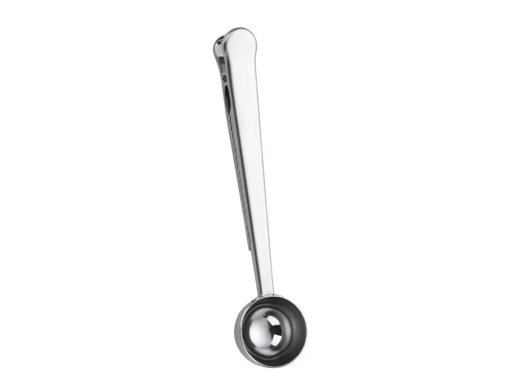 Rozsdamentes acél mérőkanál ezüst színben, klipsszel.